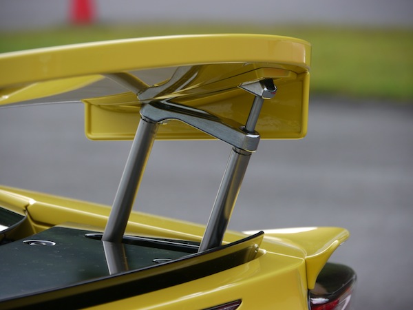 ■非常に精巧な動きをするリアウイングは上段だけでなく、ポップアップ時には下段にさらにもうひとつのリップ的なウイングがせり上がって来る複雑な構造をしている。そしてこのウイングによって超高速域でもしっかりと路面へ吸い付くライド感を与えてくれている。